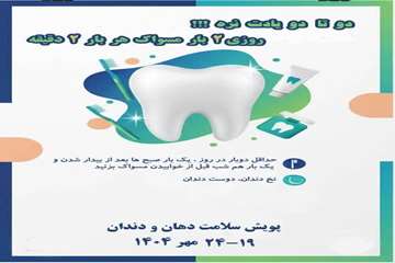 لازم به ذکر است پویش ملی سلامت دهان و دندان از ۱۹ مهر ماه لغایت ۲۴ مهر ماه در سراسر کشور برگزار خواهد شد.