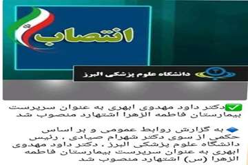 انتصاب سرپرست بیمارستان فاطمه الزهرا (س) اشتهارد