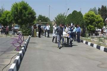 >در مورخ 97/5/27 رأس ساعت 11:05 آقای 35 ساله در محل کار واقع درشهرک صنعتی اشتهارد >بر اثرسوختگی نواحی فوقانی با اشتعال مواد شیمیایی توسط اورژانس115 شهرستان اشتهارد به بیمارستان فاطمه الزهرا (س) اشتهارد منتقل شد و بعد از انجام اقدامات درمانی توسط کد هوایی اورژانس 115 البرز در ساعت 11:57به مراکز درمانی استان البرز منتقل شد.